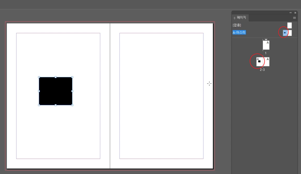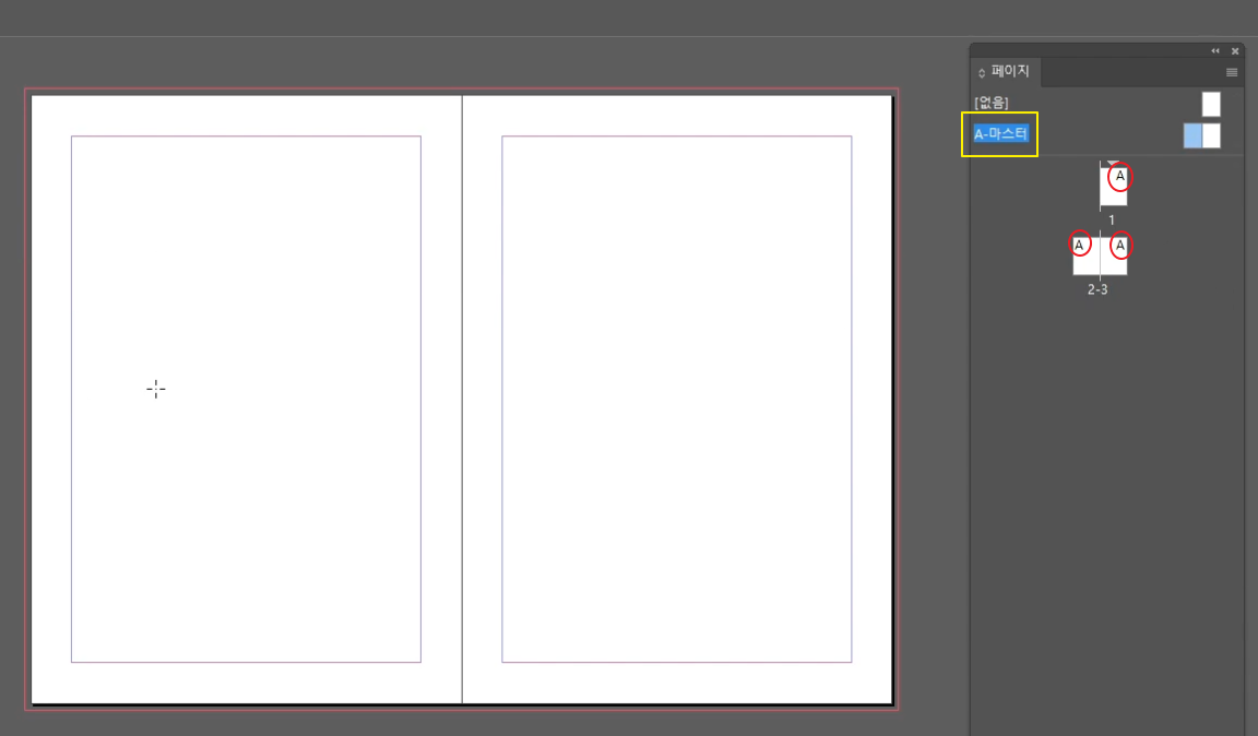 A-마스터 페이지 왼쪽을 더블클릭해서